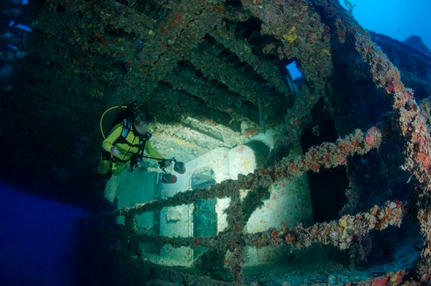 Dieses weltberühmte künstliche Riff war bis vor kurzem das grösste Wrack der Welt, das extra für Taucher versenkt wurde. Einige der Räume und Gänge wurden geöffnet und mit Leinen gesichert, sodass fortgeschrittene Taucher problemlos mit Tageslicht durchtauchen können.